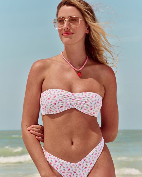 A pretty bikini top designed with a bandeau silhouette. Back tie detail. Imported.