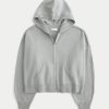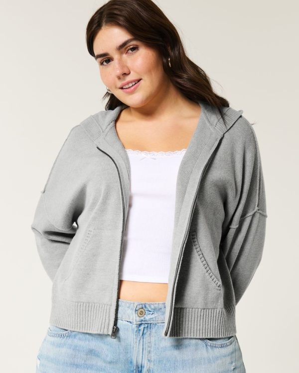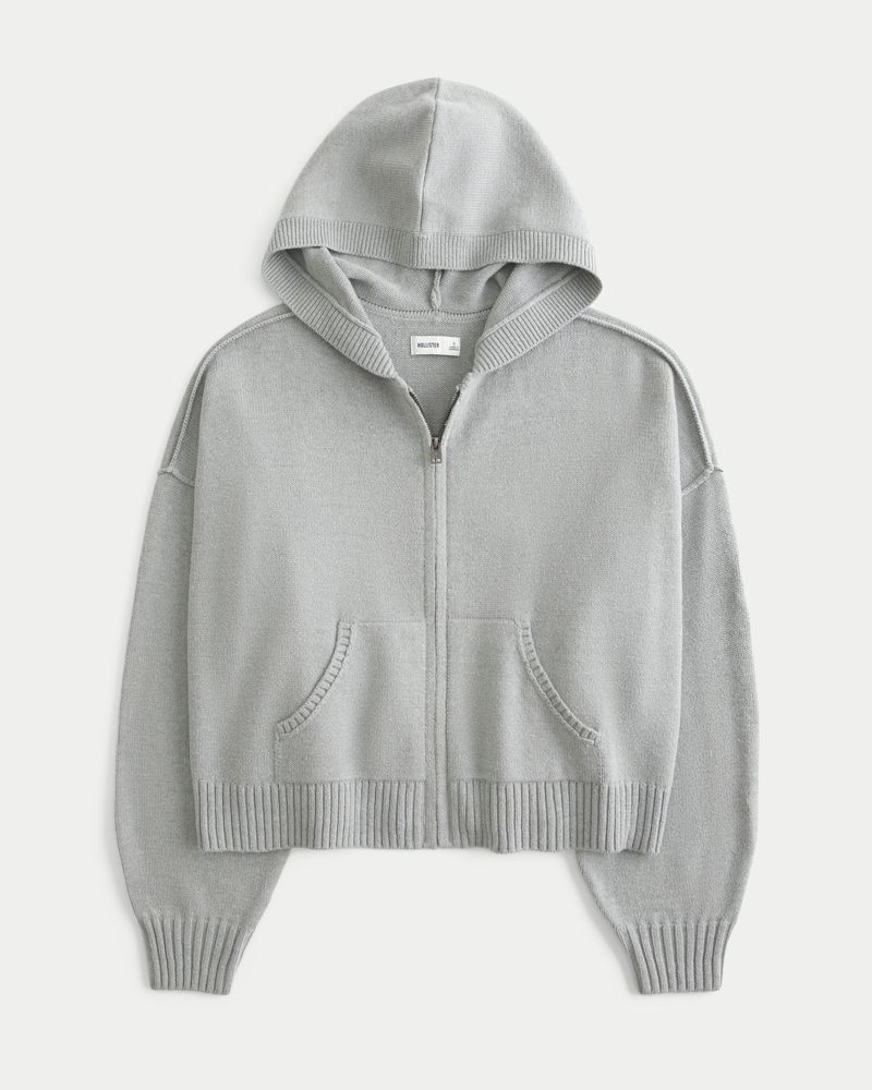 A cute and cozy hoodie in super soft sweater-knit fabric. Full zip-up closure, ribbed trims, long sleeves, hood, front pockets. Boxy Fit. Imported.