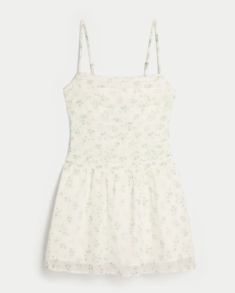 A flowy and super soft skort dress in chiffon fabric. Ruched detailing through the bodice, adjustable straps, hidden shorts. Imported.