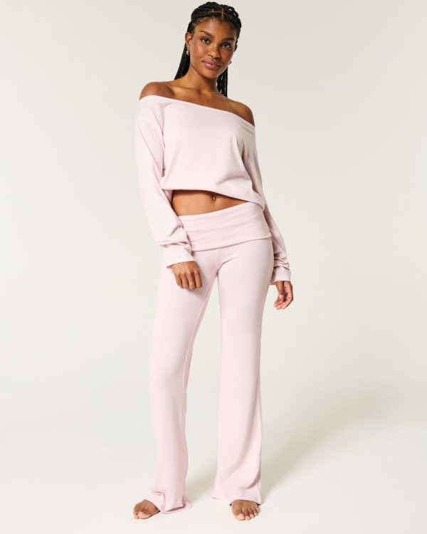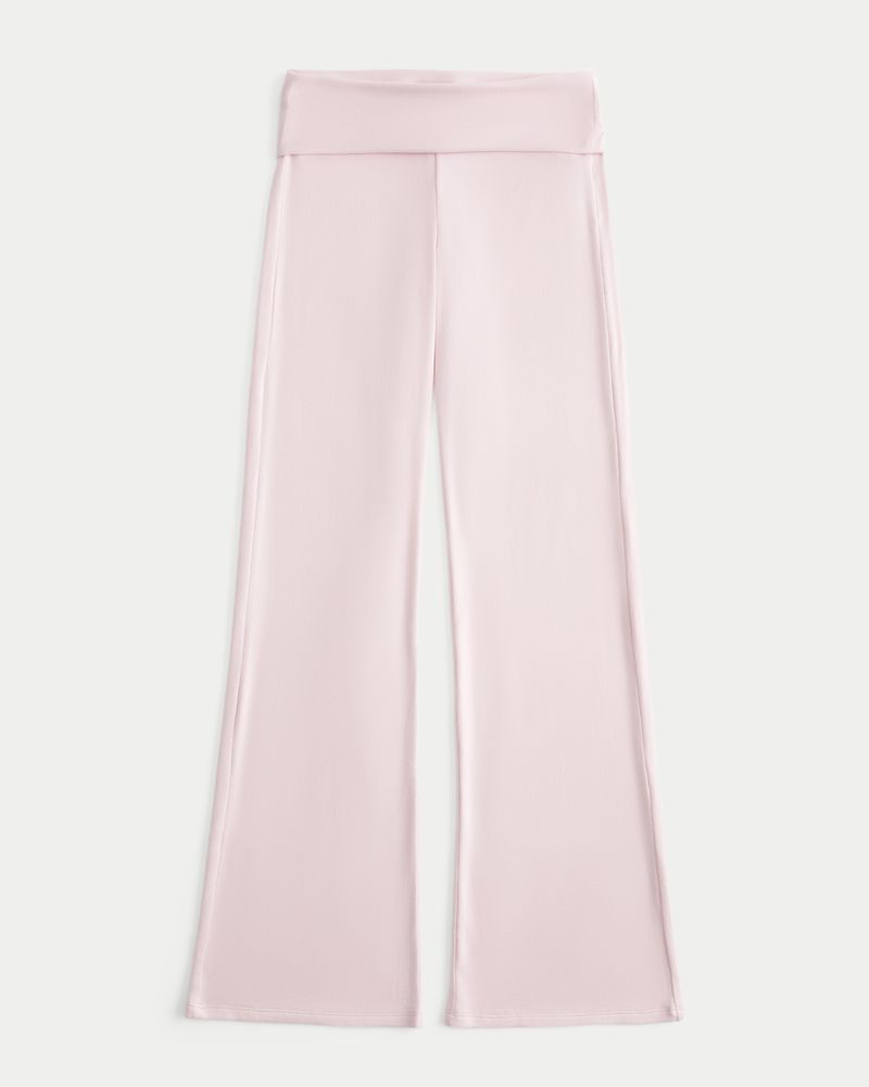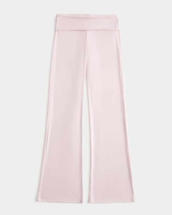 Super soft and cozy knit pants designed with a foldover waist and flared leg. Adjustable rise. Imported.
