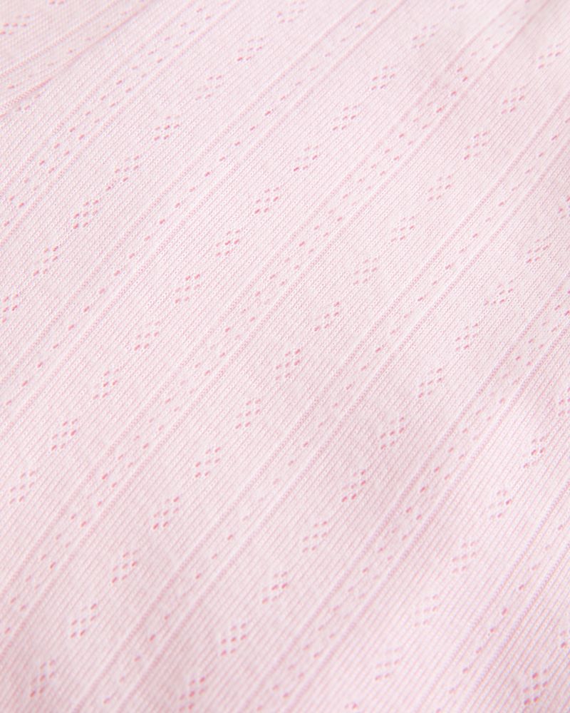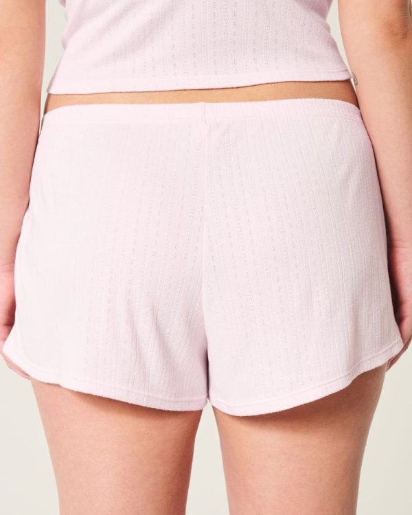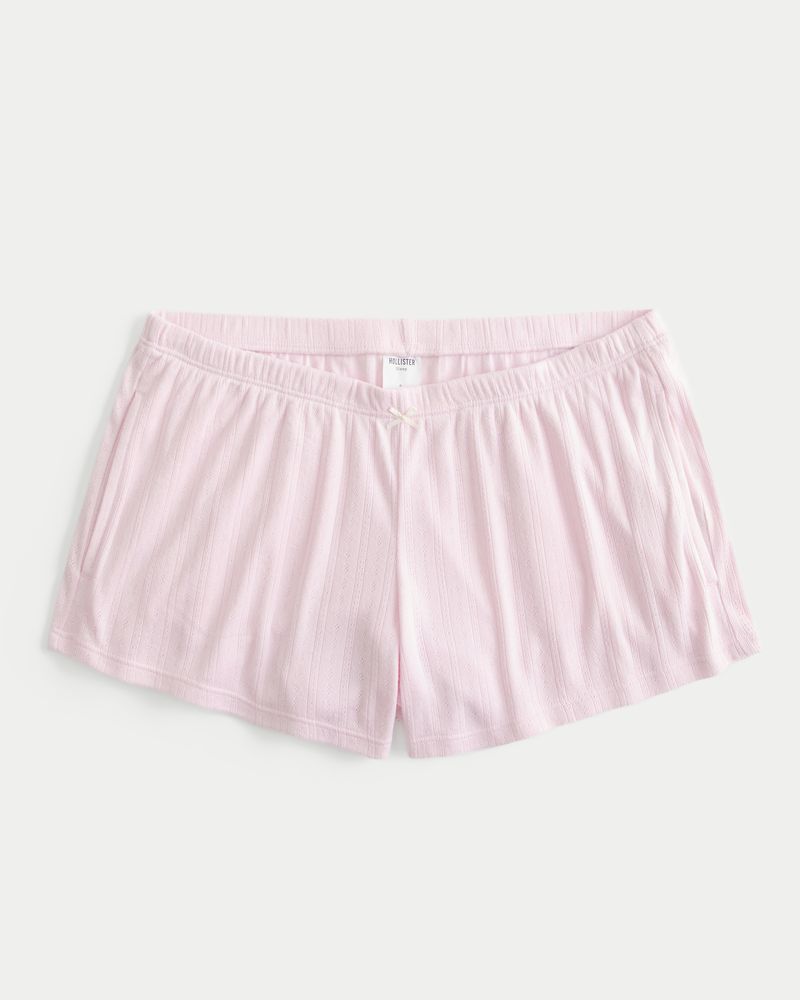 A cute and cozy shortie in super soft pointelle fabric with a banded adjustable-rise waist and pockets. Bow detail at center waist. Imported.