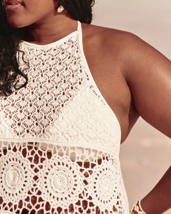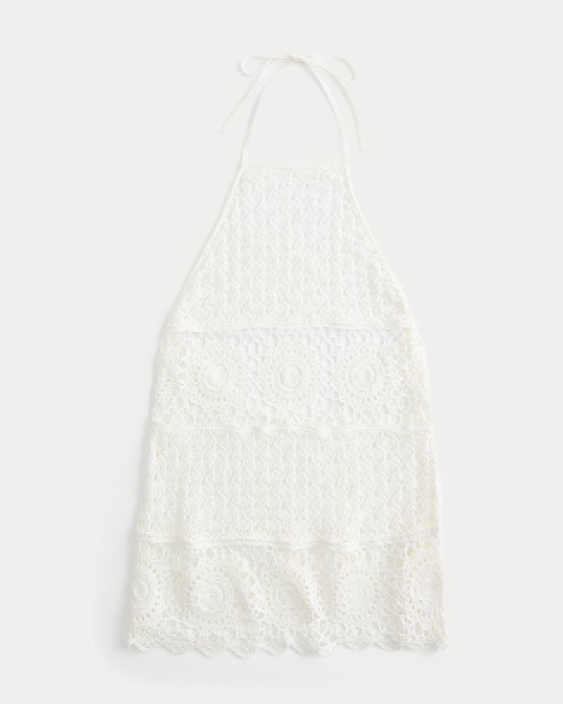 Women’s Crochet-Style Halter Cover Up Mini Dress