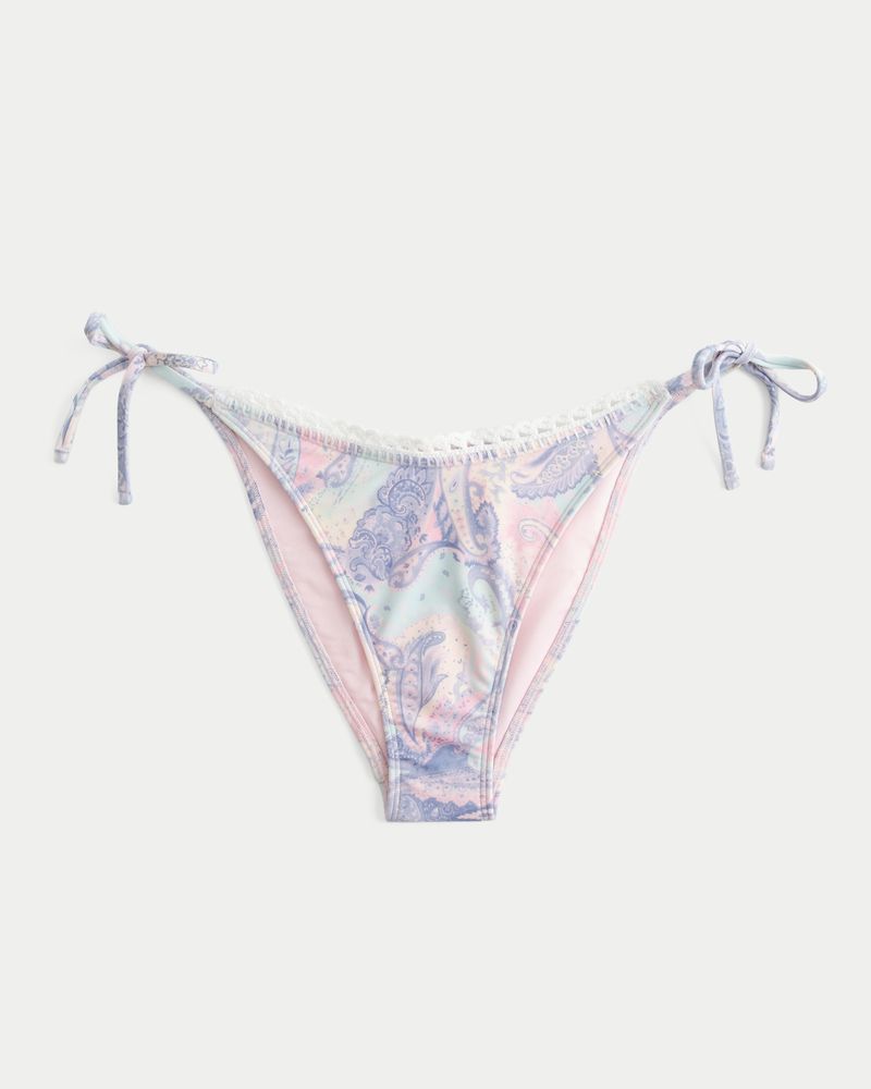 Women’s Crochet-Style Trim Side Tie Cheeky Bikini Bottom