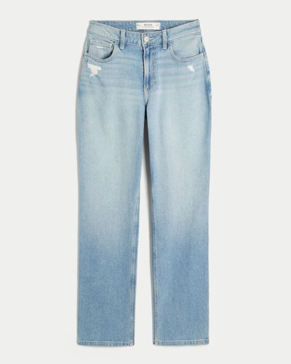 Comfortable denim jeans in a light wash, designed with flattering high-rise waist and straight leg. Vintage Stretch denim with fading, whiskering and distressed details. Imported.