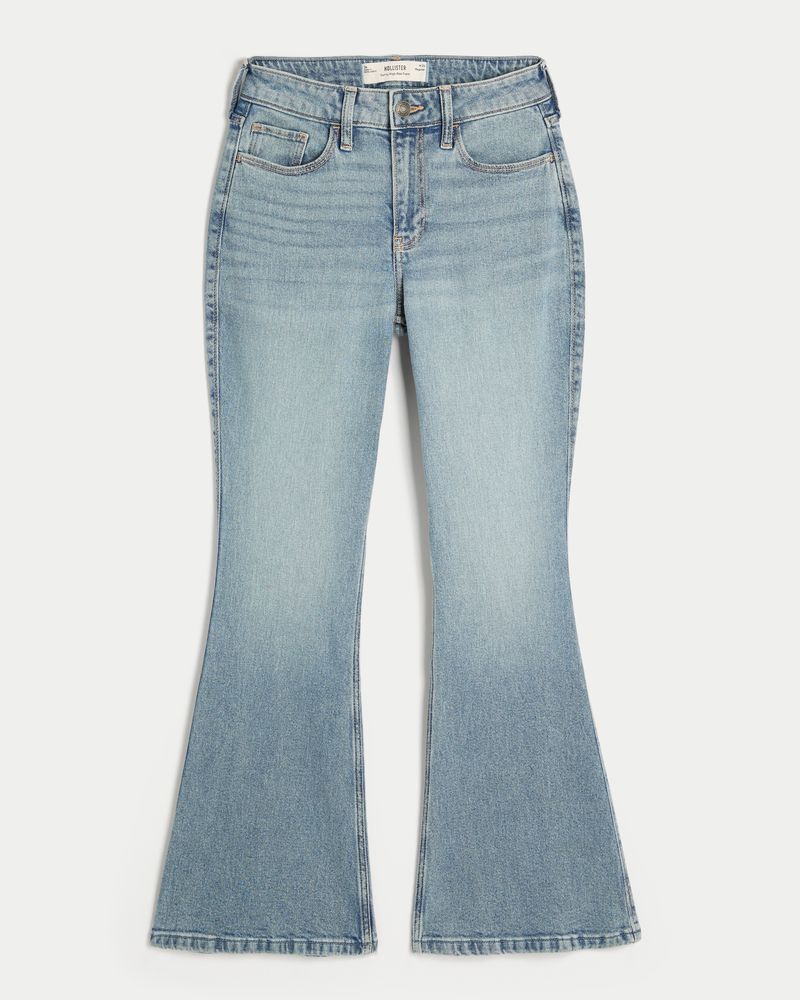 Comfortable jeans made with Vintage Stretch denim, designed with a flattering high-rise waist, slim leg and flared hem. Medium wash with fading and whiskering. Imported.