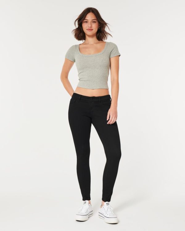 These black jeans are designed in our signature slim fit with a super skinny leg opening and flattering low-rise waist. Plus, they’re made with new smoothing pockets. We got tired of that awkward extra fabric that bunches up when you sit down, so we replaced it with a smoothing panel. Real smooth, we know. Imported.