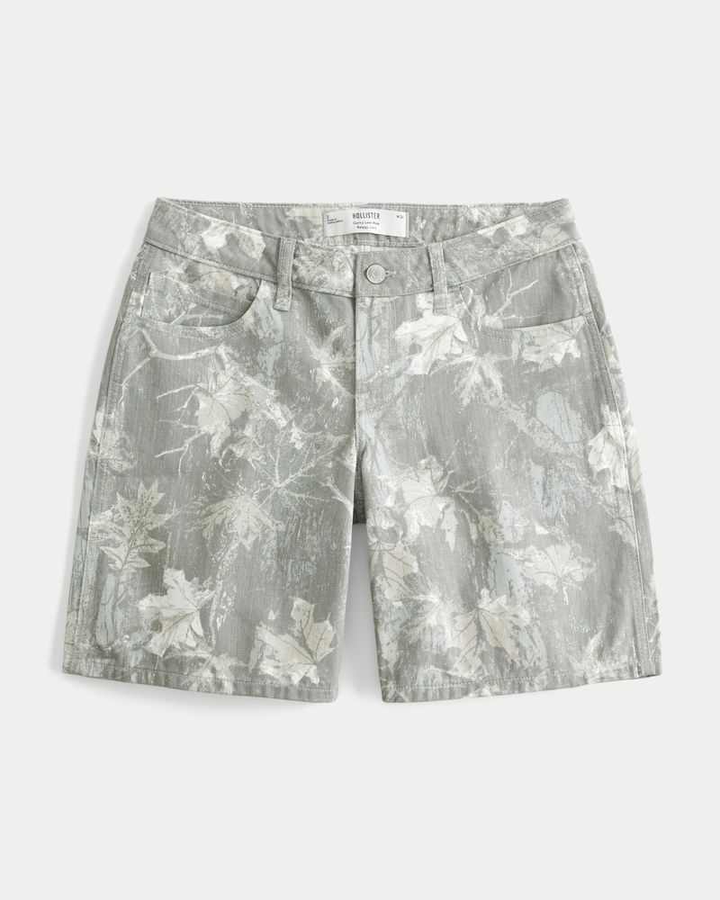 Super comfortable denim shorts designed with a curvy low-rise waist and baggy leg. All-over camo pattern. Imported.