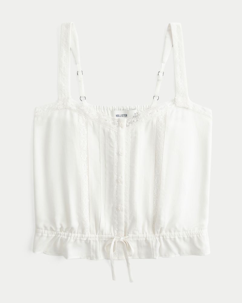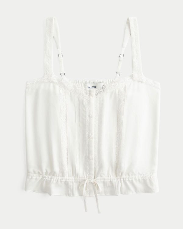 A pretty and super soft boho-inspired blouse with lace details, pintuck pleats and a cinched waist with tie. Adjustable straps, looks perfect dressed up or down! Imported.