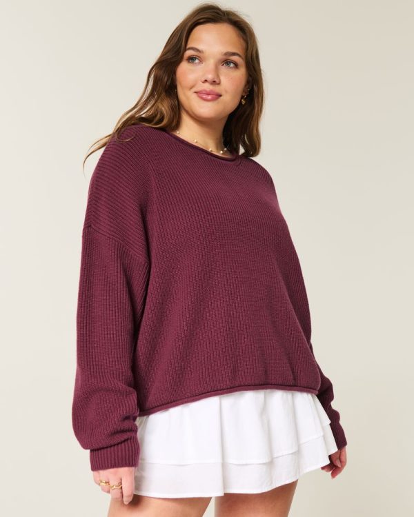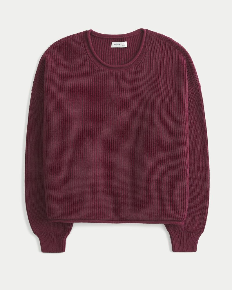 A super soft and cozy sweater with a curled crew neckline and hem. Ribbed sleeve hems. Easy Fit. Imported.