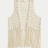 A cozy and super soft vest in crochet-style fabric with a pretty fringe hem. No closure. Easy Fit.