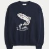 This cozy and super soft sweater features a jumping fish intarsia graphic. Crew neckline, long sleeves, ribbed trims. Easy Fit. Imported.