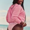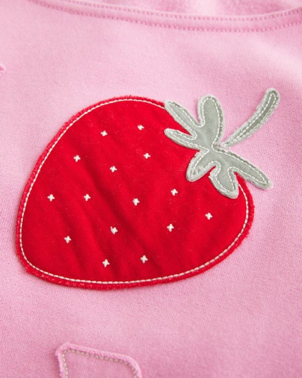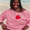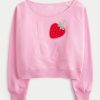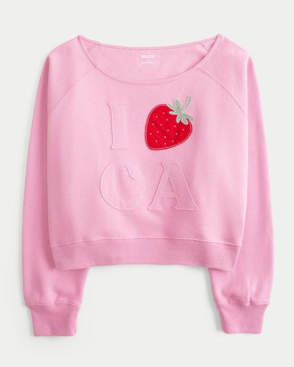 A super soft fleece sweatshirt featuring I Heart CA graphic applique with a cute berry detail. Off-the-shoulder neckline, long sleeves. Easy Fit. Imported.