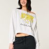 This super soft fleece sweatshirt features official licensed University of Iowa Hawkeyes print graphics and an off-the-shoulder neckline. Long sleeves. Easy Fit. Imported.