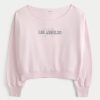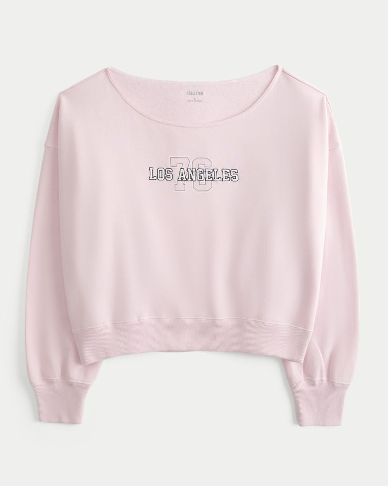 This super soft fleece sweatshirt features Los Angeles graphic embroidery and an off-the-shoulder neckline. Long sleeves. Easy Fit. Imported.
