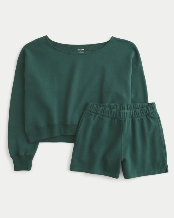 Easy Off-the-Shoulder Sweatshirt & Fleece Shorts Set