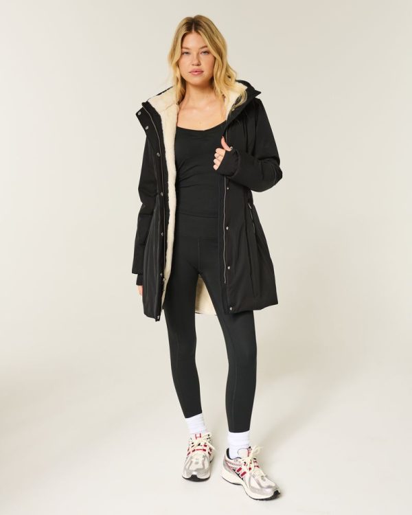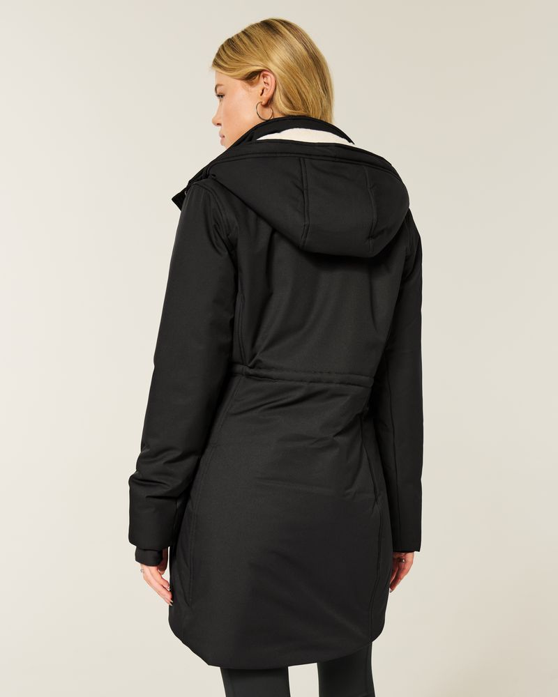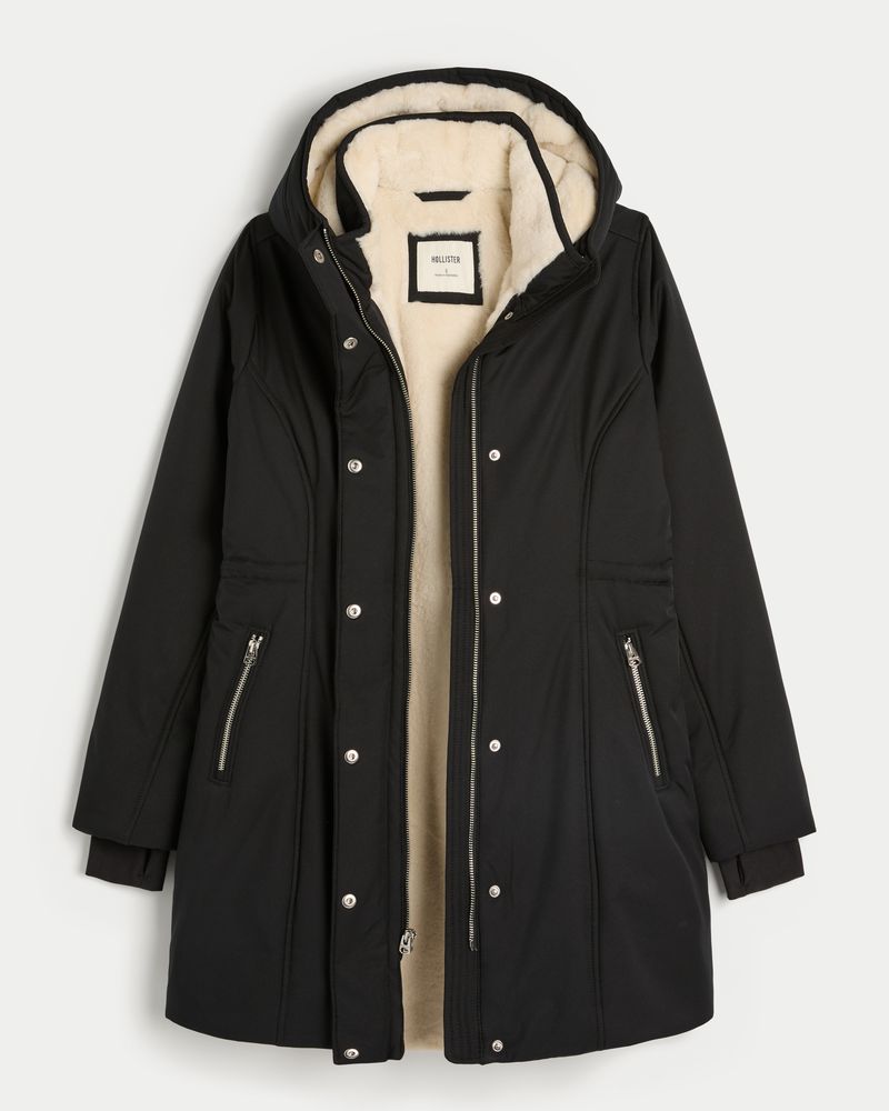 A classic parka with cozy faux fur lining and a wind and water-resistant exterior. Soft jersey storm cuffs with thumb openings, mock-neck collar, faux fur-lined hood, full zip-up closure with snaps, cozy lined front zipper pockets, interior pocket, adjustable waist bungee. Imported.