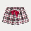 Super soft flannel sleep shorts with a tie waist and pockets. Plaid pattern. Imported.