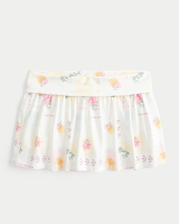 This cute mini skort is designed with a low-rise waist and features hidden knit shorts. Soft and stretchy knit fabric with an adjustable foldover waistband. Imported.
