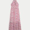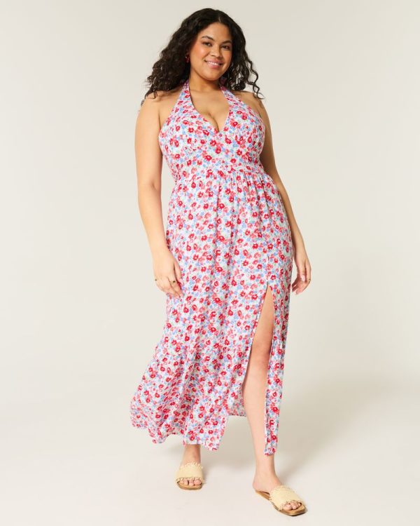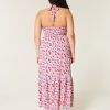 Flowy and super soft, this dress features halter straps and an open back detail. Removable pads, pockets, maxi length. Imported.