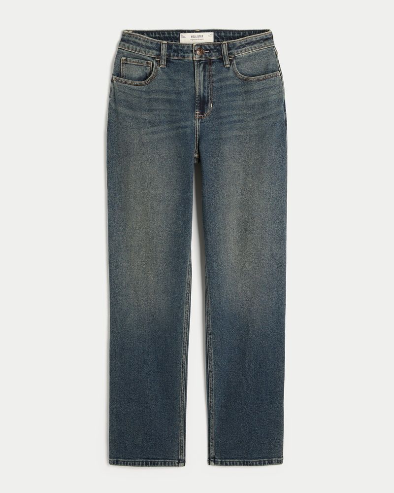 Comfortable jeans made with Vintage Stretch denim in a dark wash, designed with a flattering high-rise waist and straight leg. Fading, whiskering. Imported.
