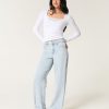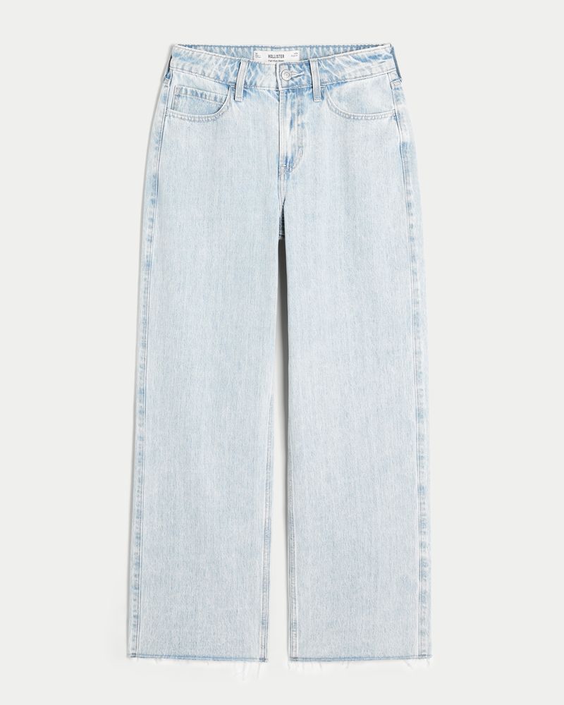 Cute and comfortable jeans in a light wash, designed with a flattering high-rise waist and baggy leg. Imported.