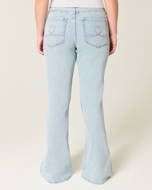 Women’s High-Rise Light Wash Heart Embroidered Flare Jeans