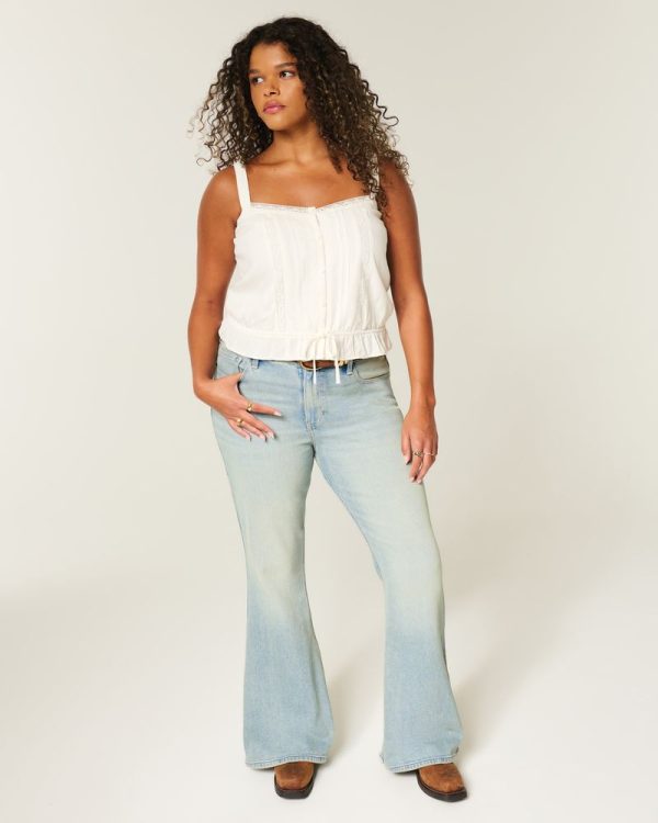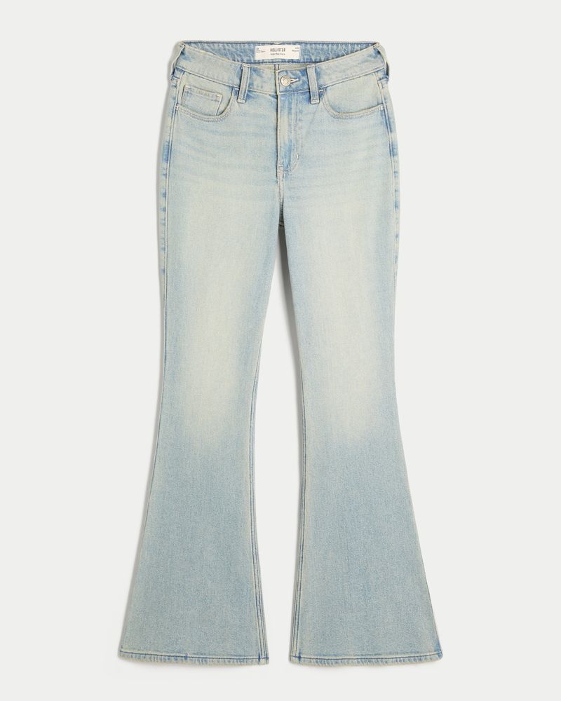 Comfortable jeans in Vintage Stretch denim, designed with a flattering high-rise waist and flared leg. Star-stitched details at the back pockets, light wash with fading and whiskering. Imported.