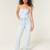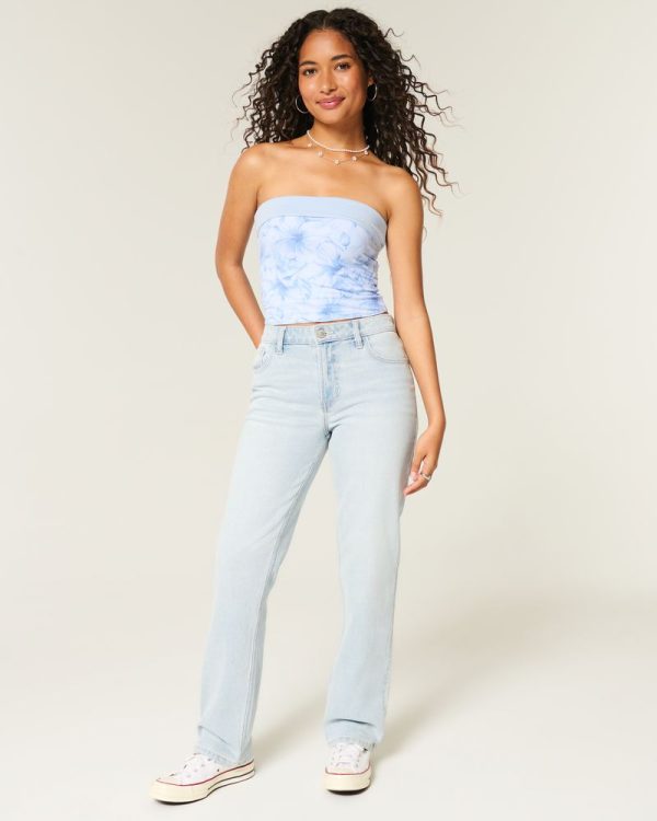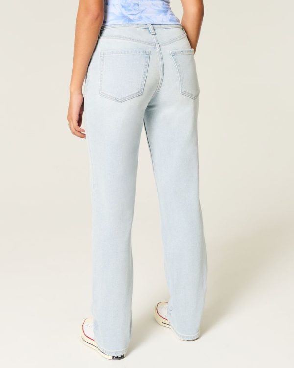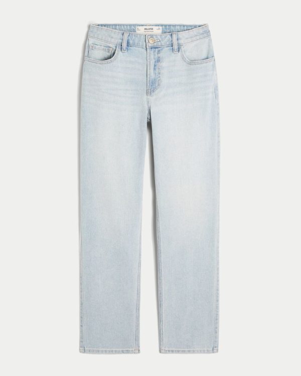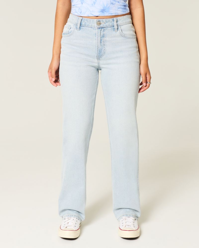 Comfortable denim jeans designed with a flattering high-rise waist and straight leg. Light wash with fading and whiskering. Imported.