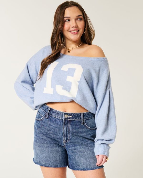 Cute and comfy denim shorts designed with a flattering high-rise waist and relaxed fit. Medium dark wash with fading and whiskering. 5″ inseam, raw edged hems. Imported.