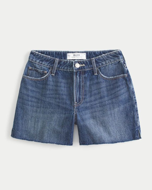 High-Rise Medium Dark Wash Relaxed Denim Shorts 5″