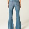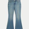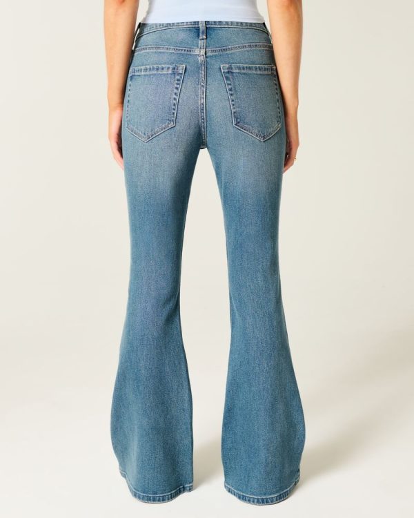 Comfortable denim jeans in a medium wash, designed with a flattering high-rise waist, slim leg and flared hem. Fading, whiskering, Vintage Stretch denim. Imported.