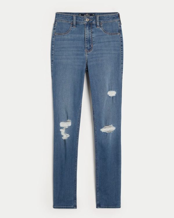 This style fits like a legging, looks like a jean. Featuring a flattering high-rise waist, medium wash, fading, whiskering and ripped detailing. Imported.