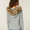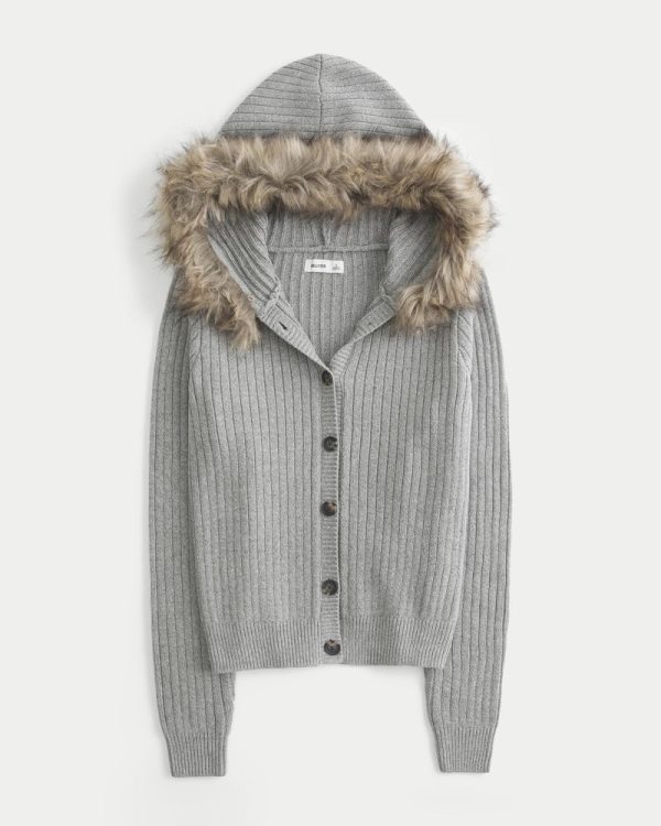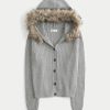 Hooded Faux Fur Trim Cardigan