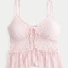Pretty and super soft, this top features all-over lace and a tie front with subtle flyaway detail. Removable bust pads, adjustable straps, looks perfect dressed up or down! Slim Fit. Imported.