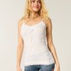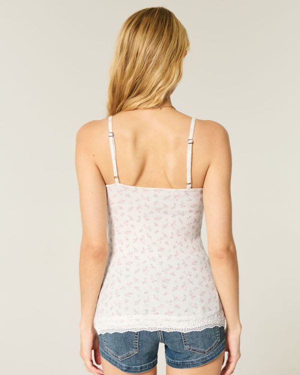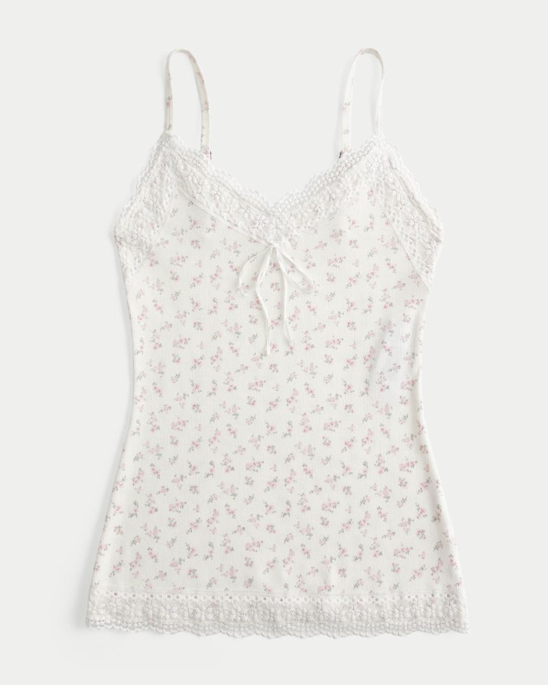 Pretty and super soft, this Y2K-inspired cami features lace trim at the neckline and hem, plus a bow detail at the center neckline. Adjustable straps. Slim Fit. Imported.