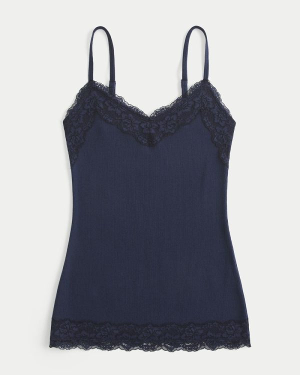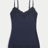 Pretty and super soft, this Y2K-inspired cami features lace trim at the neckline and hem. Adjustable straps. Slim Fit. Imported.