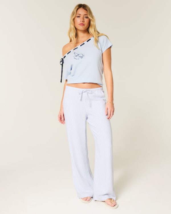 Comfy pants in a soft linen blend, designed with a baggy leg and pull-on drawstring waist. Pockets. Imported.