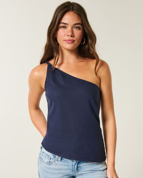 Linen-Blend One-Shoulder Top