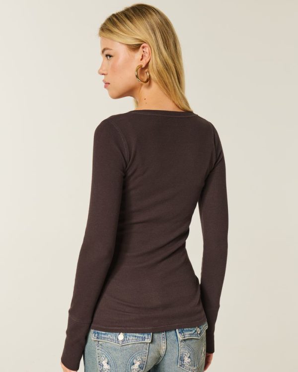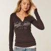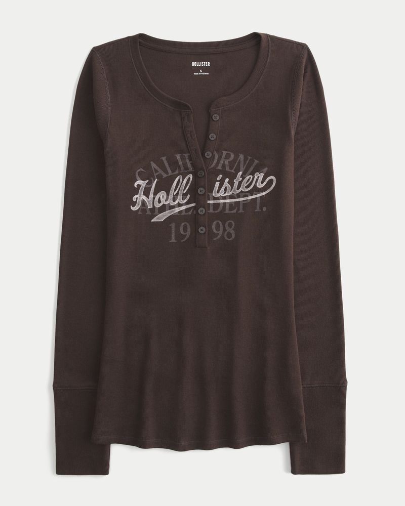 This super soft and cute henley features print logo graphics and a button placket. Long sleeves. Slim Fit. Imported.