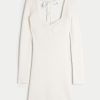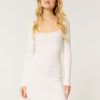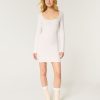 Long-Sleeve Cinch Bust Open-Back Sweater Dress