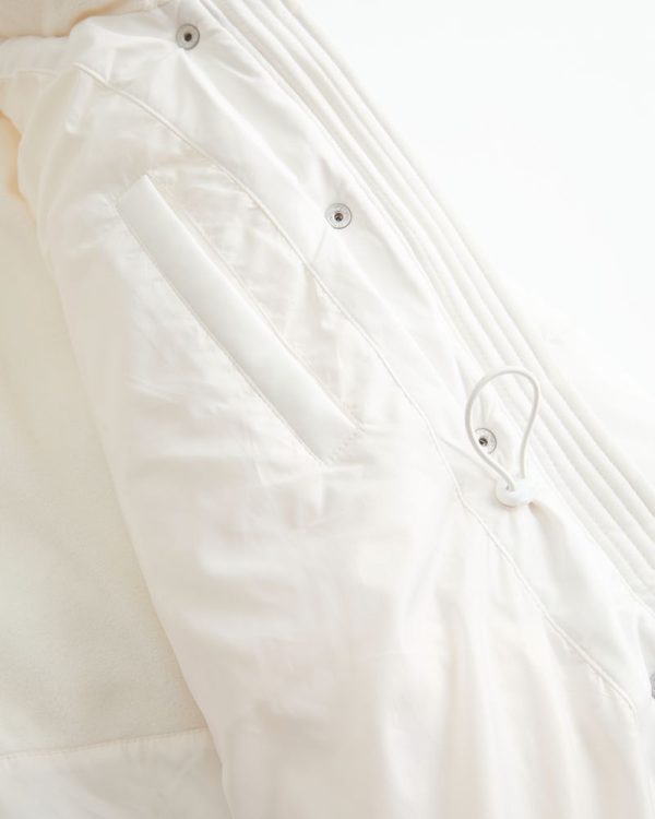This cozy longline puffer parka features quilted channels and wind and water-resistant fabric. Soft jersey storm cuffs with thumb openings, interior pocket, front pockets with snap closure, hood, cozy lining, full zip-up closure with snaps, longer length, interior bungee cord. Imported.