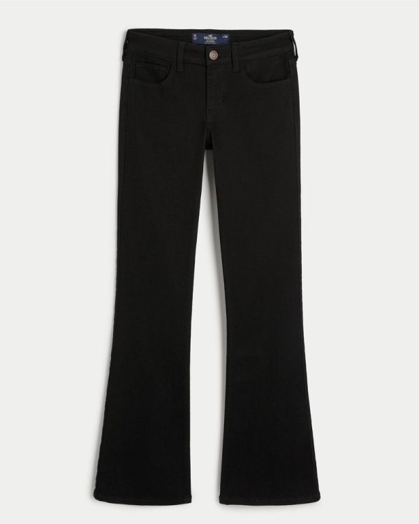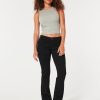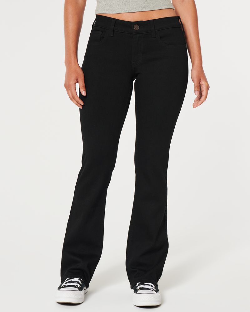 Slim through the thigh with a wider hem below the ankle, these black boot jeans feature a trendy low-rise waist. Imported.