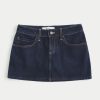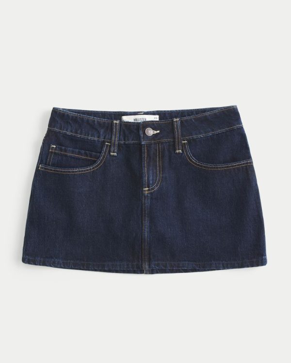 Low-Rise Dark Wash Plaid Pocket Denim Mini Skort