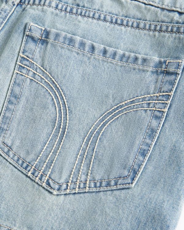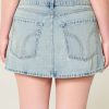 A cute denim mini skort in a light wash, featuring our iconic rainbow design on the back pockets. Fading, whiskering, hidden knit shorts, low-rise waist. Imported.
