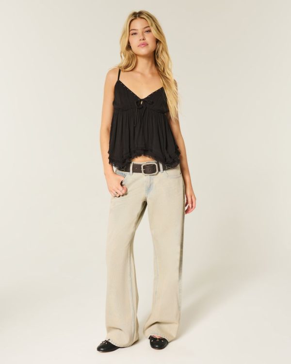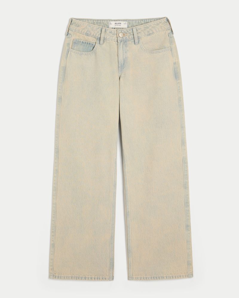 Comfortable denim jeans in a light wash, designed with a low-rise waist and baggy leg. Imported.
