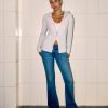 Comfortable denim jeans in a medium wash, designed with a flattering low-rise waist, slim leg and bootcut hem. Vintage Stretch denim. Imported.