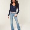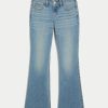 Cute and comfortable jeans in Vintage Stretch denim, designed with a low-rise waist and bootcut hem. Medium wash with fading and whiskering. Imported.