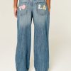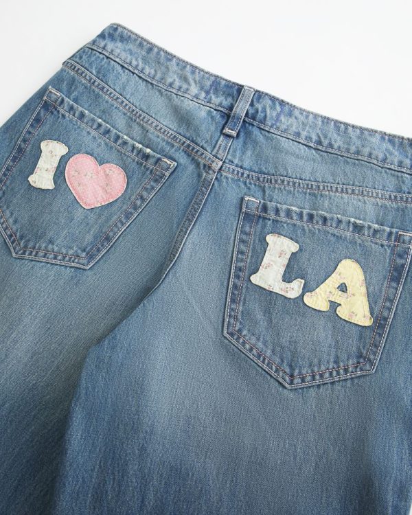 Women’s Low-Rise Medium Wash Los Angeles Graphic Baggy Jeans