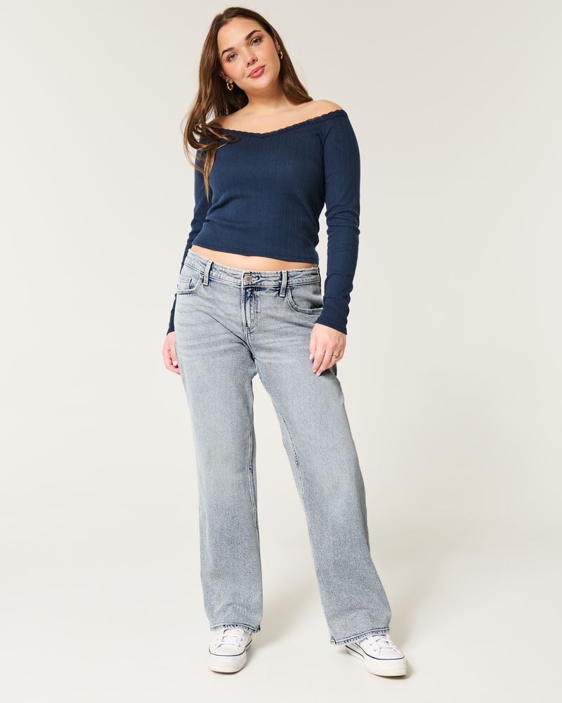 Low-Rise Medium Wash Relaxed Straight Jeans