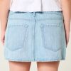 A cute and comfy denim mini skort with railroad stripes and a flattering low-rise waist. Hidden knit shorts, 5-pocket styling. Imported.